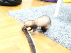 Check every toy your ferret has for the same reasons. Make sure the sponge is in place, there aren’t any holes in toys, the plushies have all their eyes and noses. This is the best way to be sure the ferret hasn’t swallowed anything that can harm him. Also, check out my post about ferret toys so you know which ones are safe and which ones aren’t